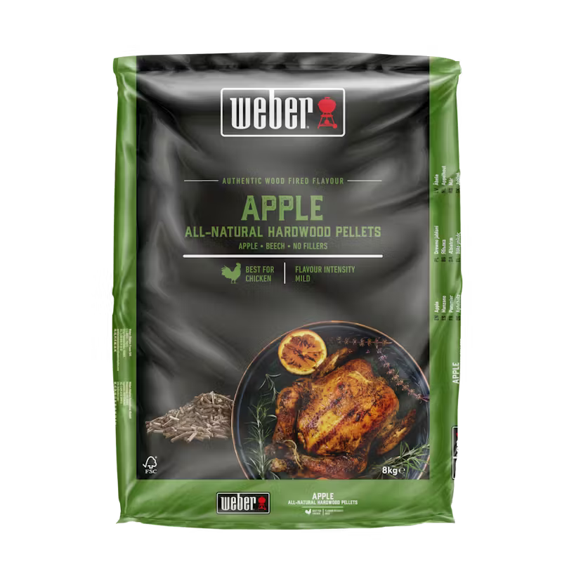 Fülle den Pelletbehälter deines Holzpelletgrills mit Hartholzpellets aus Apfelholz, um deinem Grillgut einen milden Hauch von einem kräftigen, süßen und rauchigen Aroma zu verleihen. Apfelholz passt gut zu Hähnchen, Schwein, Gemüse, Backwaren und Pizza. Probiere es aus, wenn du das nächste Mal Grillgut auf deinem Holzpelletgrill langsam bei niedriger Hitze garst.