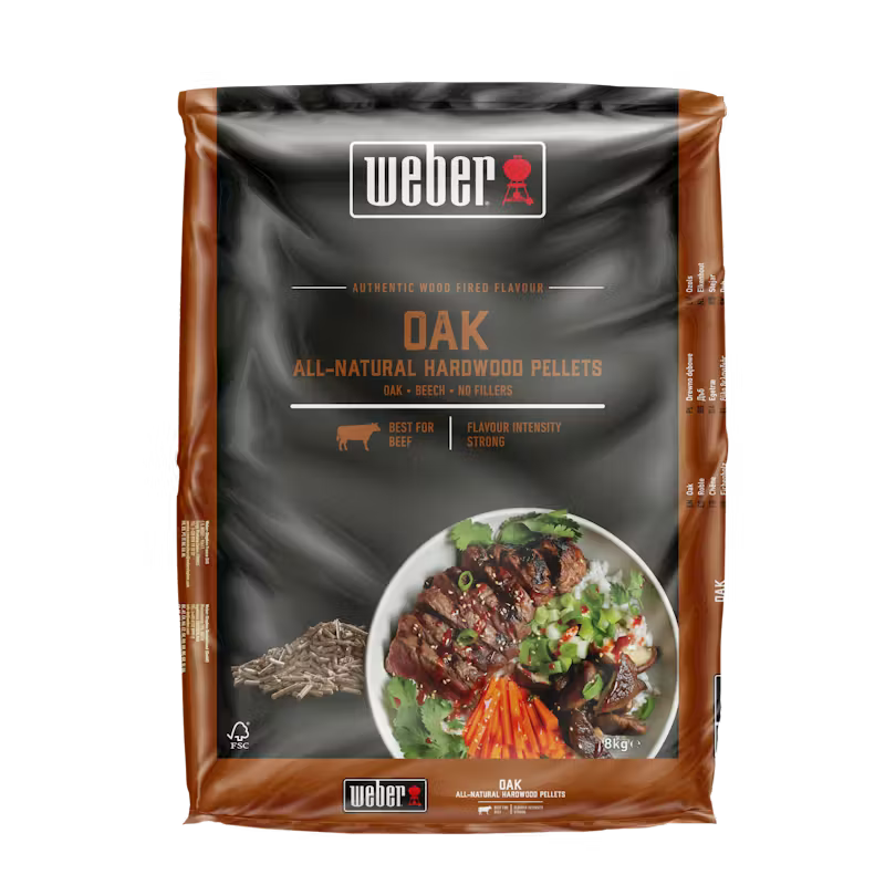 Fülle den Pelletbehälter deines Holzpelletgrills mit Hartholzpellets aus Eichenholz, um deinem Grillgut ein rauchiges Aroma mit einem robusten Profil zu verleihen. Eichenholz passt perfekt zu Rindfleisch, Schwein, Lamm und Wild. Probiere es aus, wenn du das nächste Mal Grillgut auf deinem Holzpelletgrill langsam bei niedriger Hitze garst.